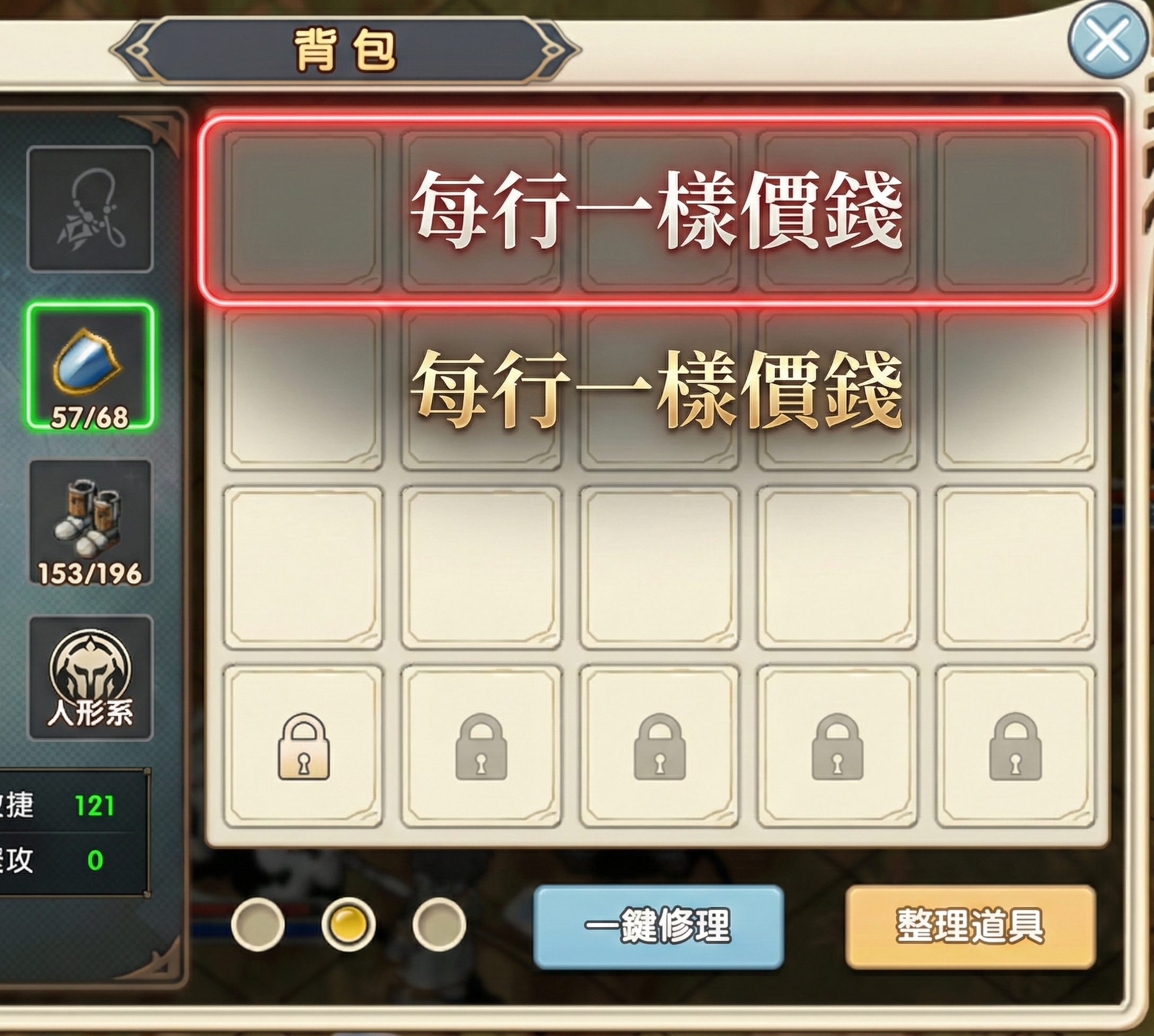 背包全開總花費:11,781,000 魔幣 或 495 個擴容槌子