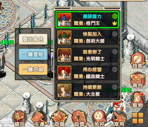 一鍵登陸 - 一鍵同時登錄同一帳號下的所有其他角色(上限為五個)