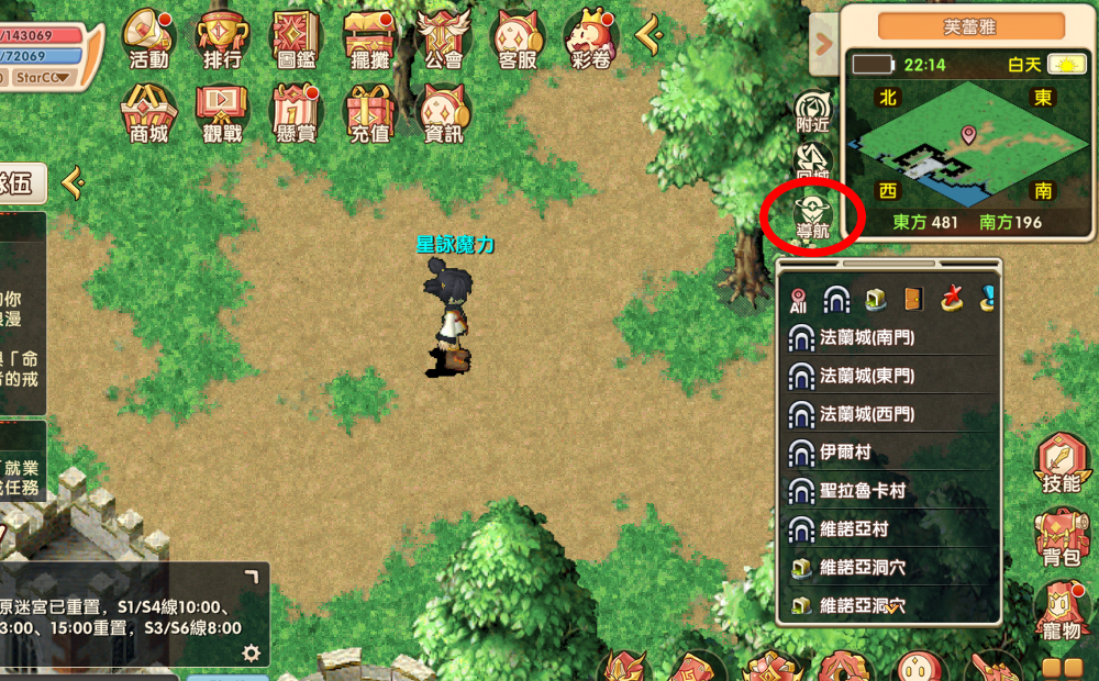 另外,亦可以使用“導航”功能,快速尋找該地圖中想要去的地方,如洞穴,村莊及任務地點等