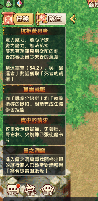 任務攻略系統 - 在主畫面點擊"任務"即會顯示所有任務的攻略提示,大部份新手任務更提供自動走路功能自動到達下一個步驟地點(在主畫面點擊任務名字)。另外加入重置任務功能,方便重刷同一任務獲取獎