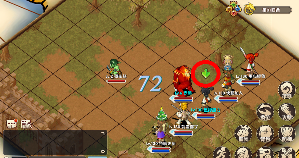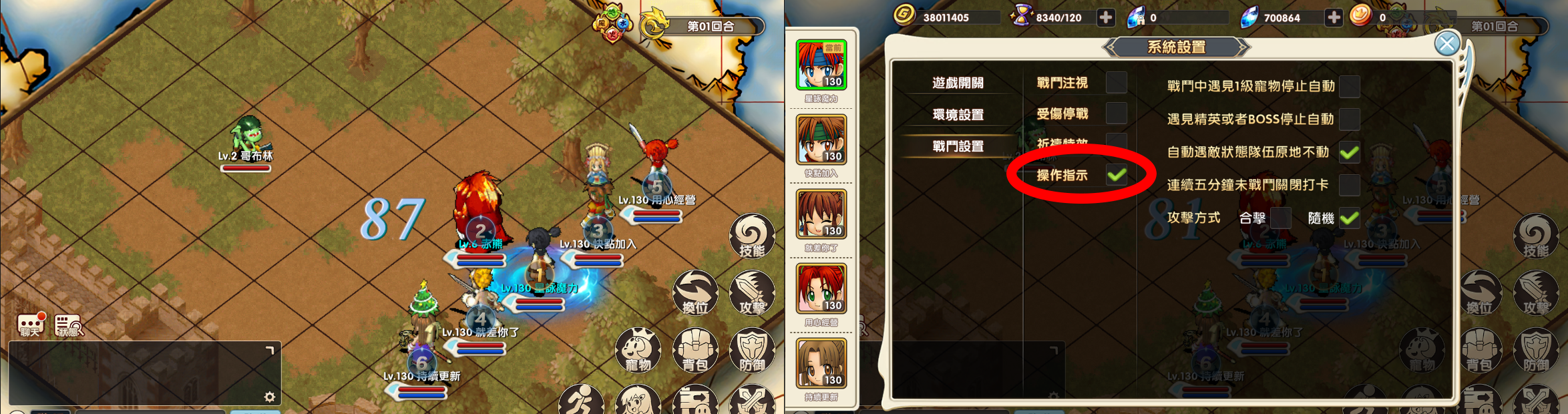 多控時的戰鬥操作 - 按照箭頭指示(上圖紅圈)逐一選擇角色戰鬥指示,亦可以配合自動戰鬥系統使用