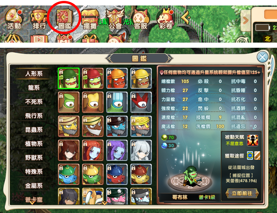 寵物圖鑑 - 圖鑑可以查看所有寵物的全部資料,包括獲取途徑,等級分類等