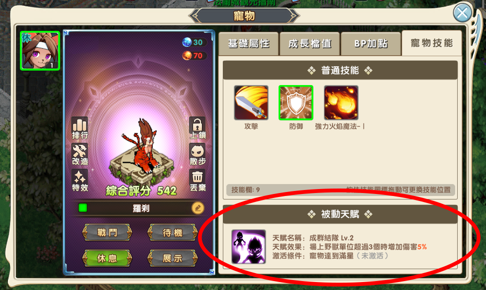 滿星 - 寵物可以獲特額外被動天賦(按種族決定)