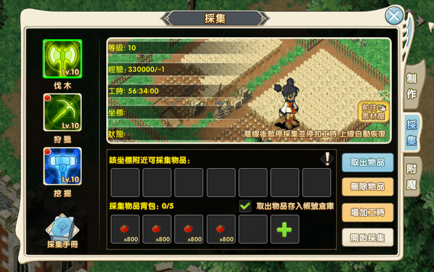 採集改為消耗「工時」而非消耗「魔力」,掛網採集更加方便。
