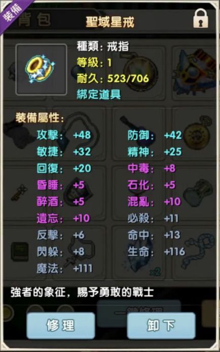 高數值飾物往往難以取得且不可維修,導致不捨得使用。但 聖域星塔 的獎品「聖域星戒」是可無限維修的高數值飾物,堪稱畢業飾物。