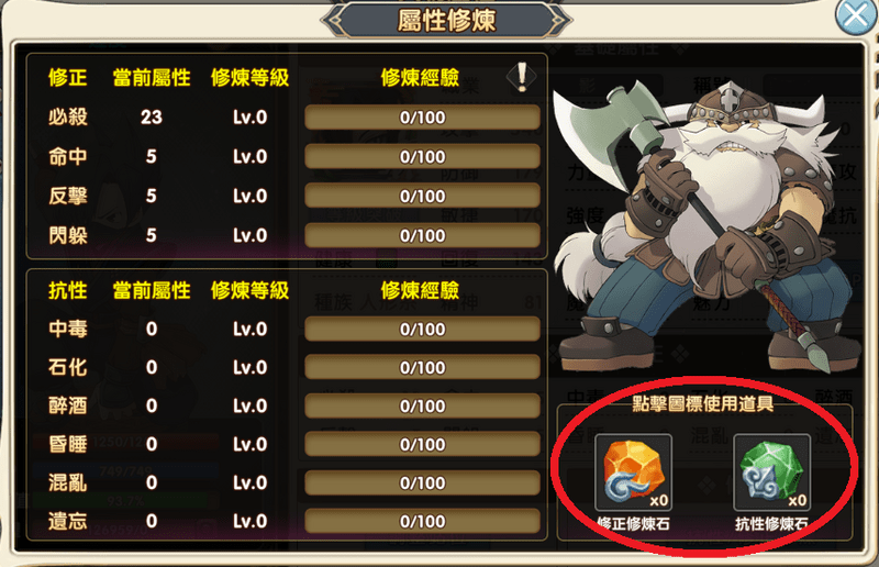 除了裝備和水晶提供的加成外,挑戰 無盡的挑戰 也可用積分換取「角色修正修煉石」和「角色抗性修煉石」。修煉後即使空身也有自帶的抗性與修正加乘。
