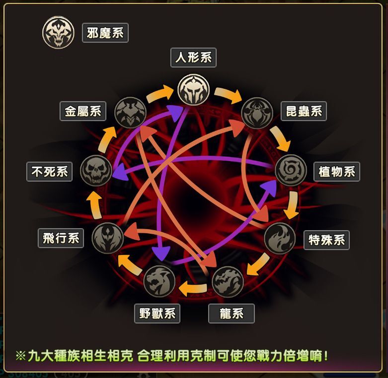 種族剋制會影響攻擊和防禦各 10% ~ 20%,合理搭配隊伍的種族組合,是提升戰力的關鍵。
