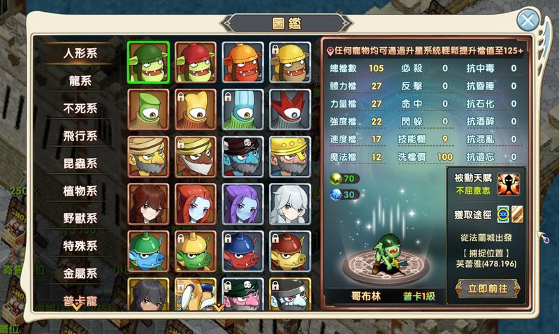 收錄所有寵物的詳細數據,支援搜尋名稱、篩選種族與卡等、依各項能力排序