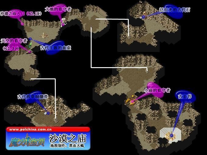 砂漠之祠為隨機迷宮 5 層,魔物為 Lv.25~27 殺手蠍、木乃伊;迷宮刷新時間 6 小時(僅供參考)。