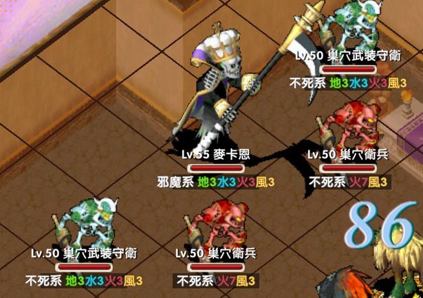 巢穴武裝守衛250不死系1450全3攻擊、防禦、諸刃、即死魔法(出現機率不高)