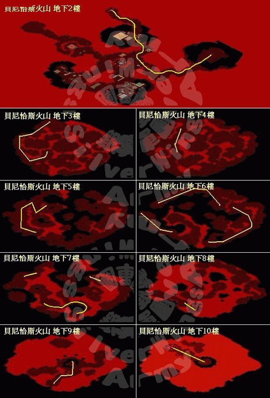 5. 從北邊的入口進入貝尼恰斯火山。 6. 到火山最下層與沉默之龍諾利 (76, 38) 說話選「是」進入戰鬥。 戰勝後傳送到火山地下二樓調查龍之沙漏(100,80)選是傳送回歌姬處