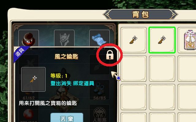 - 進入樹海後,會隨機取得「4 屬性鑰匙」和「4 屬性破爛不堪的鑰匙」中各一把。