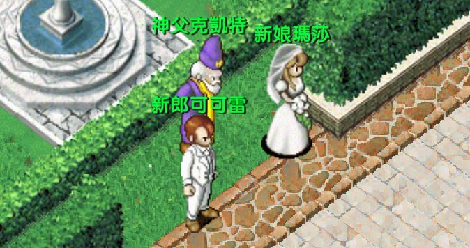 到哥拉爾鎮找新郎可可雷 (130, 176) → 換得「結婚戒指」,裝備後得到稱號「已經結婚的人」持藍鳳凰的羽毛