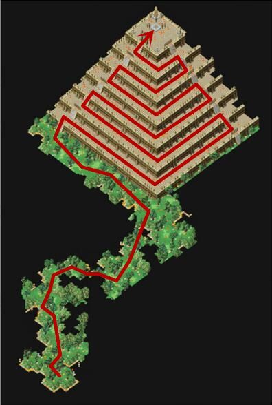 1. 前往小島 64.46 處,經由黃色傳送石進入通往山頂的路。(通往山頂的路為隨機迷宮。)