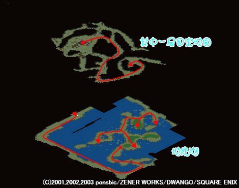 8. 從地圖牆壁進入鳥人的洞窟,通過 9 層隨機迷宮到達始祖的墓地,與時賴說話進入戰鬥。戰勝後再與時賴交談,場景變更。