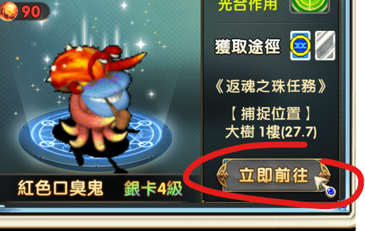 獲勝後與大樹(16,10)的小雞談話取得紅色返魂珠
