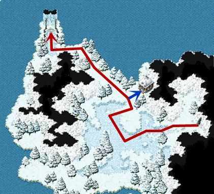 - 獲勝後與阿斯提亞神官(15,5)說話傳送到佛利波羅往右上方走進入冰之洞窟(97,166)