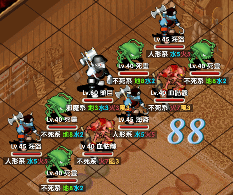 建議帶地水水晶,先清死靈後清血骷髏,然後集中攻擊頭目;頭目前的海賊要留著避免頭目直接攻擊角色,頭目的攻擊力很高,防低的朋友請小心被打飛