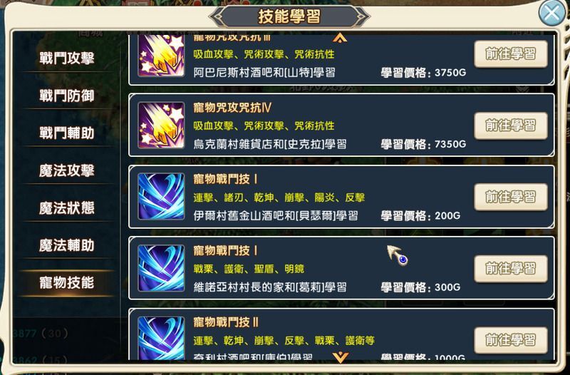 | 寵物強化 | 増加寵物戰鬥後經驗值的取得。 |
